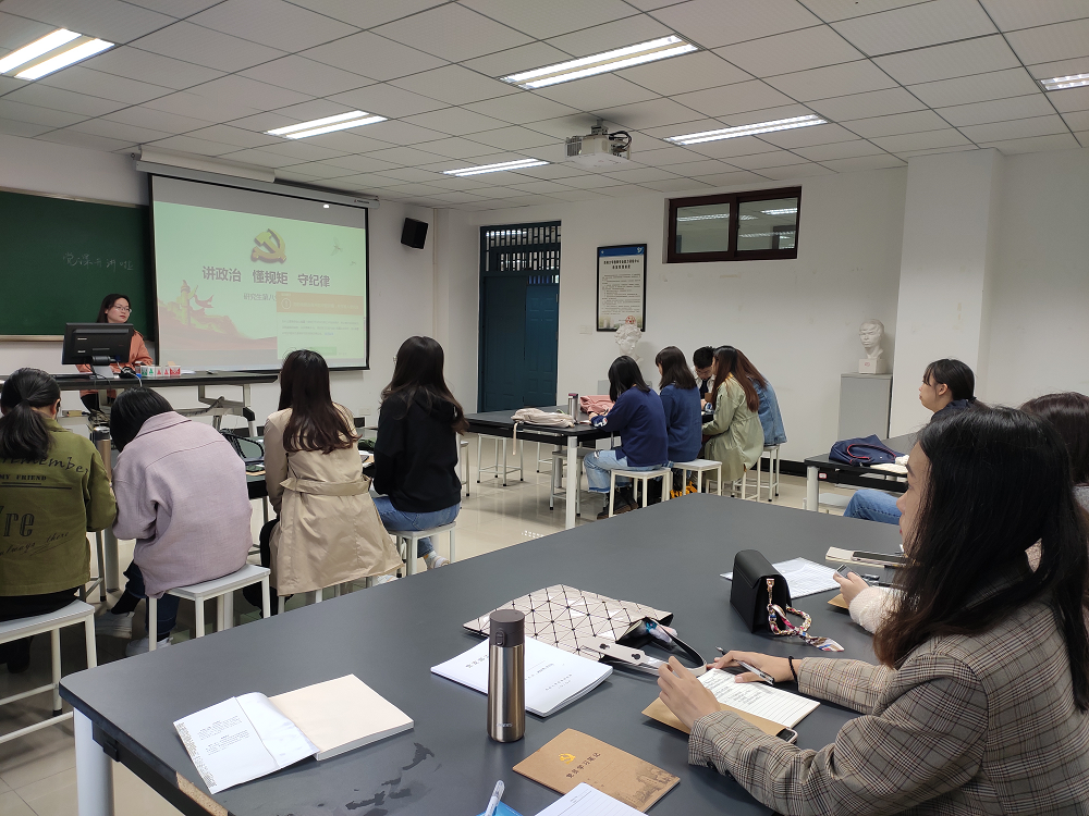 10月16日下午,研究生第八党支部“讲政治 懂规矩 守纪律”主题党日活动在师元楼509教室举行。支部全体党员及入党积极分子参加了活动,支部书记郑婷主持。