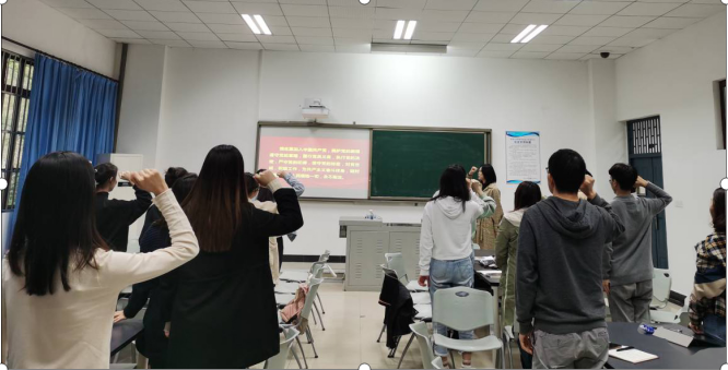 活动最后,由高欣玉同志带领大家重温入党誓词。组织委员曹洁婷同志总结道:“作为一名党员,我们要时刻牢记身份,发挥好党员先锋模范带头作用,在工作中以身作则,在学习中踏实严谨,将为师生办实事、为人民服务融入日常生活中。”