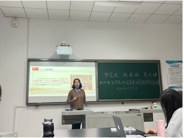 其次,支部书记讲授党课。支部书记李晓娟用一堂微党课带领我们从一个庄严宣告、一个主题、四个伟大成就、一种精神、九个必须、新的征程等角度为我们剖析了《建党一百周年讲话》。中国共产党带领中国人民实现了新民主主义的伟大成就、社会主义革命和建设的伟大成就、改革开放和社会主义现代化建设的伟大成就、中国特色社会主义的伟大成就。接着,党支部书记建议党员同志今后可以多开展形式多样的主题党日活动,丰富大家的政治生活。