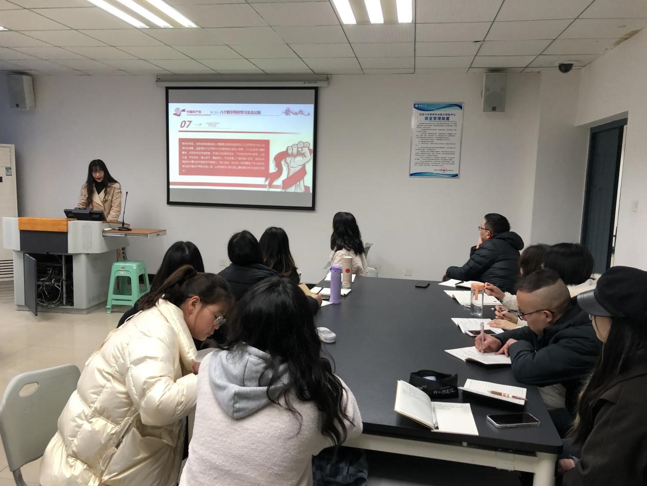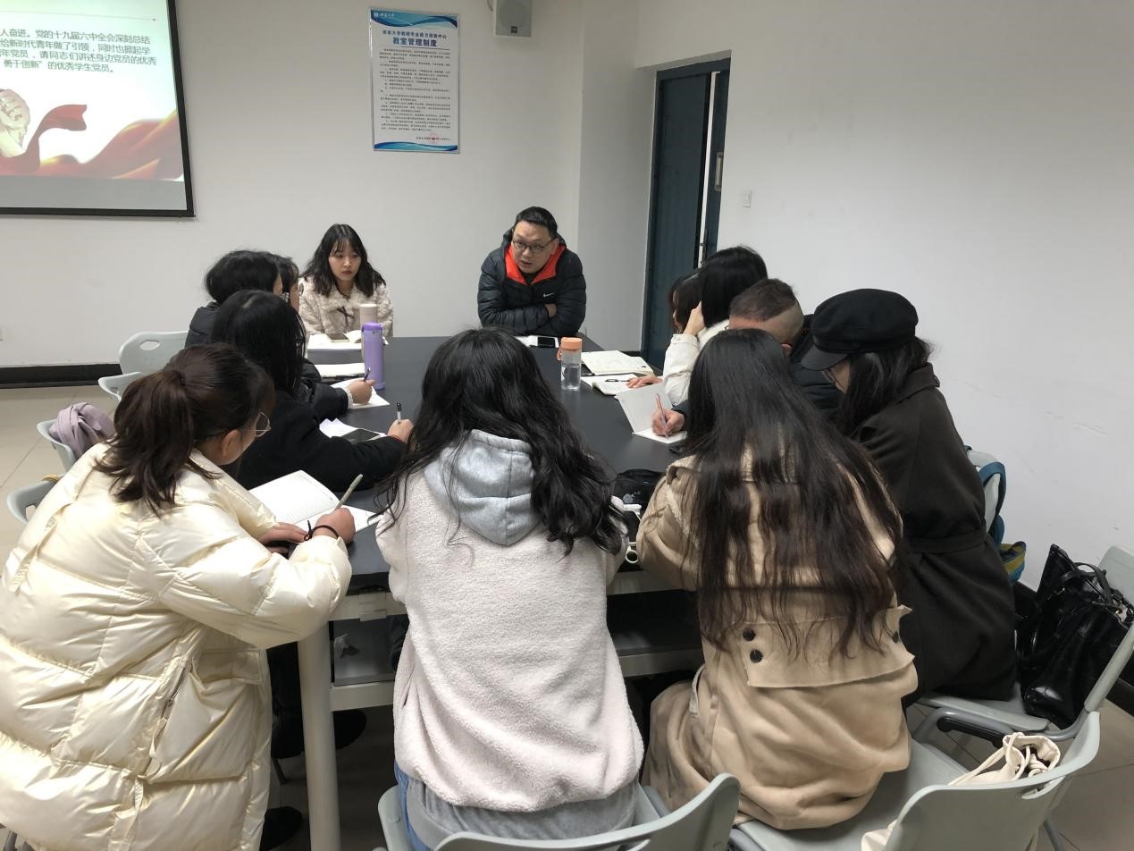 出席:王强(书记)、殷小茹(组织委员)、周菲菲(宣传委员)、李玉(纪检委员)、罗桂旭(正式党员)、马镜(正式党员)、马甜(正式党员)、谢锦盟(正式党员)、张洁(正式党员)、张汝莉(正式党员)、周筱雯(预备党员)、马佳敏(正式党员)、石肖肖(预备党员)、唐三山(预备党员)