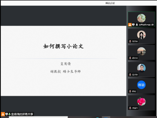 12月17日19:00,皇甫倩副教授为北碚王朴中学开展题为“如何撰写小论文”化学学科名师线上培训活动。皇甫老师以部分一线教师“论文质量低”的具体实例表现入手,分析了为什么教师难写出高质量的论文的可能原因。从五个方面讲述了课题的来源,提出了七个选题技巧。给出了好的论文题目应该是满足以下三个要求:一是具体明确——体现理论基础、研究方法、研究对象、研究内容等;二是朴实聚焦,避免哗众取宠;三是可以在题目后加“是什么”或“的方法”来判断。指出文章撰写摘要的六个注意事项,并总结了摘要的模板。在最后,皇甫副教授整理了写论文过程中可能存在的问题,并就相关问题提出了相应建议,强调了写文章的五点要求,明确了撰写规范、合格的论文,教育论文的基本结构。