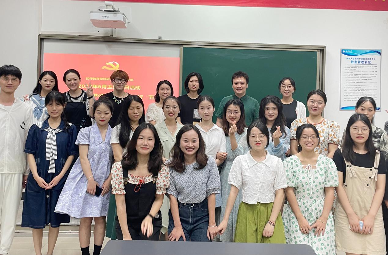 随后,大家就如何自觉践行“五个模范”展开激烈讨论。邓玉同志结合自身专业优势,就问卷调查所得和时事提出自己的见解:“首先,我认为要有格局,作为一名教师教育学子,要从整个国家和民族教师教育发展出发确立个人理想和目标;其次,就最近唐山打人、性别对立事件,我们要不信谣不传谣,敢于昂扬主旋律、弘扬正能量;最后,教师这个职业不仅是教育员工,也是教育自己,要做好自身约束,提高思想、政治自觉,奋斗力行成为一名好老师。”陈镜宇同志谈到作为一名青年党员,要在深化理论学习中修炼、在工作全局中锻炼、在强化担当作为中磨炼,时刻将人民的利益放在心头,以实际行动诠释初心使命,勇当担当者、实干者和奋斗者。