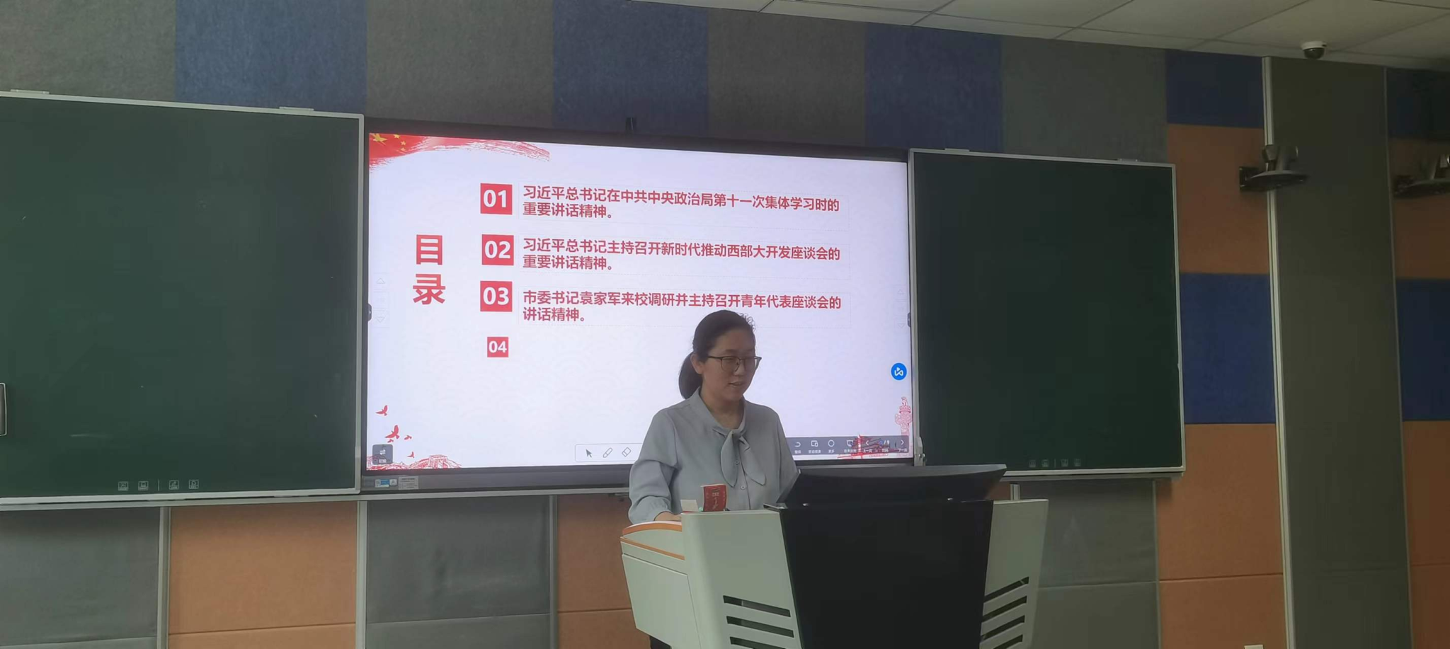 支部党员赵俊红同志导学《习近平总书记在中央政治局第十一次集体学习时重要讲话精神》《习近平总书记主持召开新时代推动西部大开发座谈会的重要讲话精神和习近平总书记在重庆考察时的重要讲话精神》《市委书记袁家军来校调研并主持召开青年代表座谈会的讲话精神》《中国共产党纪律处分条例》(第六章至第八章)。通过学习,党员同志们对发展新质生产力、新时代推动西部大开发、高等教育改革创新、党纪新要求等重大议题有了更深入的理解和体会。