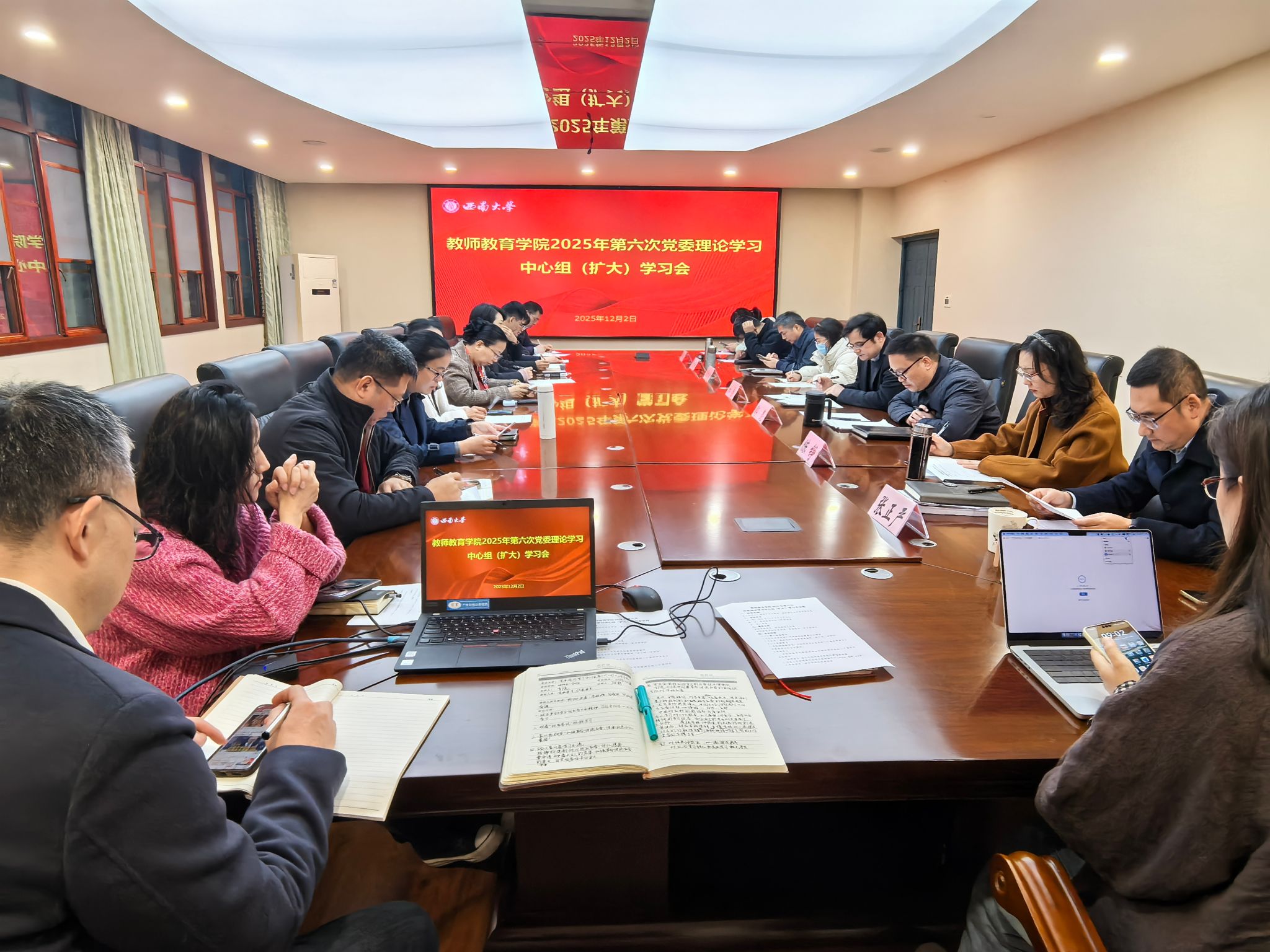 为深入学习贯彻党的二十届四中全会精神及习近平总书记系列重要讲话精神,切实把思想和行动统一到党中央决策部署上来,12月2日公司在208会议室召开2025年第六次党委理论学习中心组(扩大)学习会,本次学习主题为学习党的二十届四中全会精神,推进教师教育高质量发展,公司党委委员、财务部部长杜勇出席指导,公司党委委员、纪委委员、党支部书记参加会议,会议由党委书记郭亮主持。
