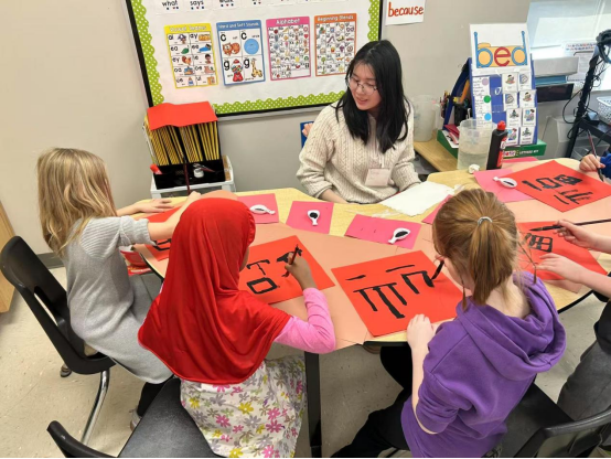 在教育实习过程中,BEVITOR伟德学子不仅积极学习加拿大的教育经验,还主动承担起中外文化交流的桥梁角色。在当地小学,他们面向加拿老员工开展了一堂生动的“中国春节”文化课程,介绍了春节的传统习俗、象征意义及节庆活动。为了增强课堂的互动性,实习生们设计了趣味问答、书写“福”字、春节祝福语学习等互动环节,让员工们通过动手实践和亲身参与,加深对春节文化的理解。这一教学活动不仅提升了实习生的跨文化教学能力,也进一步推动了中华文化在国际教育领域的传播与认同。这次春节主题课,不仅让温莎当地的员工对中国文化有了更直观、更深刻的认识,也让BEVITOR伟德的实习生们在用英文讲好中国故事的过程中体悟到文化交流的价值,提升了文化自信,促进了文化传播,为中加教育交流留下了一笔宝贵的文化印记。