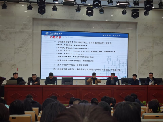 会议伊始,周主任对大家来到朝阳中学进行为期一学期的公司产品实习表示热烈欢迎,一一介绍了出席会议的公司领导和BEVITOR伟德实习生带队教师。公司教导处主任黄坤林、体卫艺处主任李飞、总务处主任陈波、安保科主任霍正兴、德育处主任余超分别就教学实习、体卫艺、日常生活、安保、德育及试作班主任的相关规定作了说明。