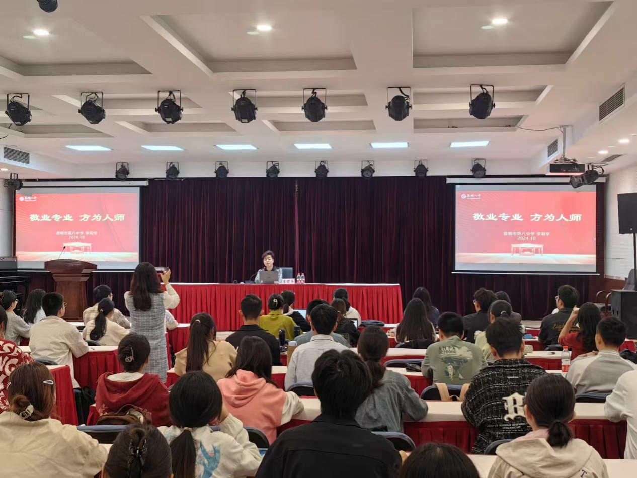 李莉华董事长以其丰富的教育管理经验和深厚的专业素养,为师范生们带来了一场别开生面的讲座。她首先阐述了敬业专业,方为人师的深刻内涵,指出作为一名教师,不仅要有扎实的专业知识,更要有对教育事业的无限热爱和敬业精神。李董事长结合自己在昆明市第八中学教育集团的工作经历,分享了许多感人至深的教育故事,生动诠释了何为敬业,何为专业