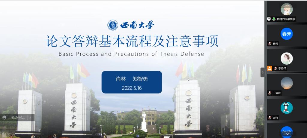 此次毕业论文答辩经验分享交流会增进了同学们对答辩重要性的认识,明确了答辩流程,能够帮助同学们有计划、有针对性地进行答辩相关准备。 (卢春芳/供稿 郑婷/审核)