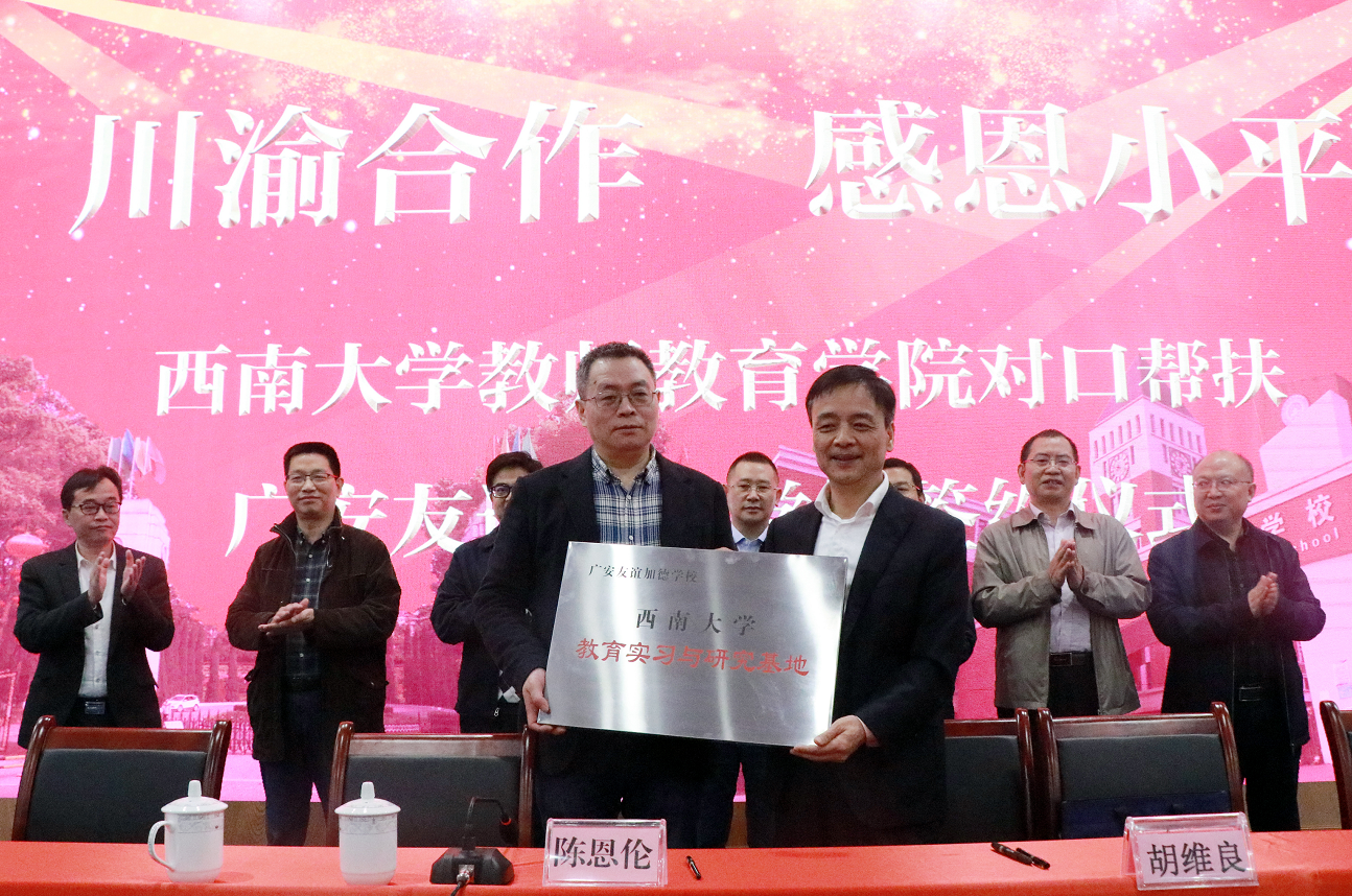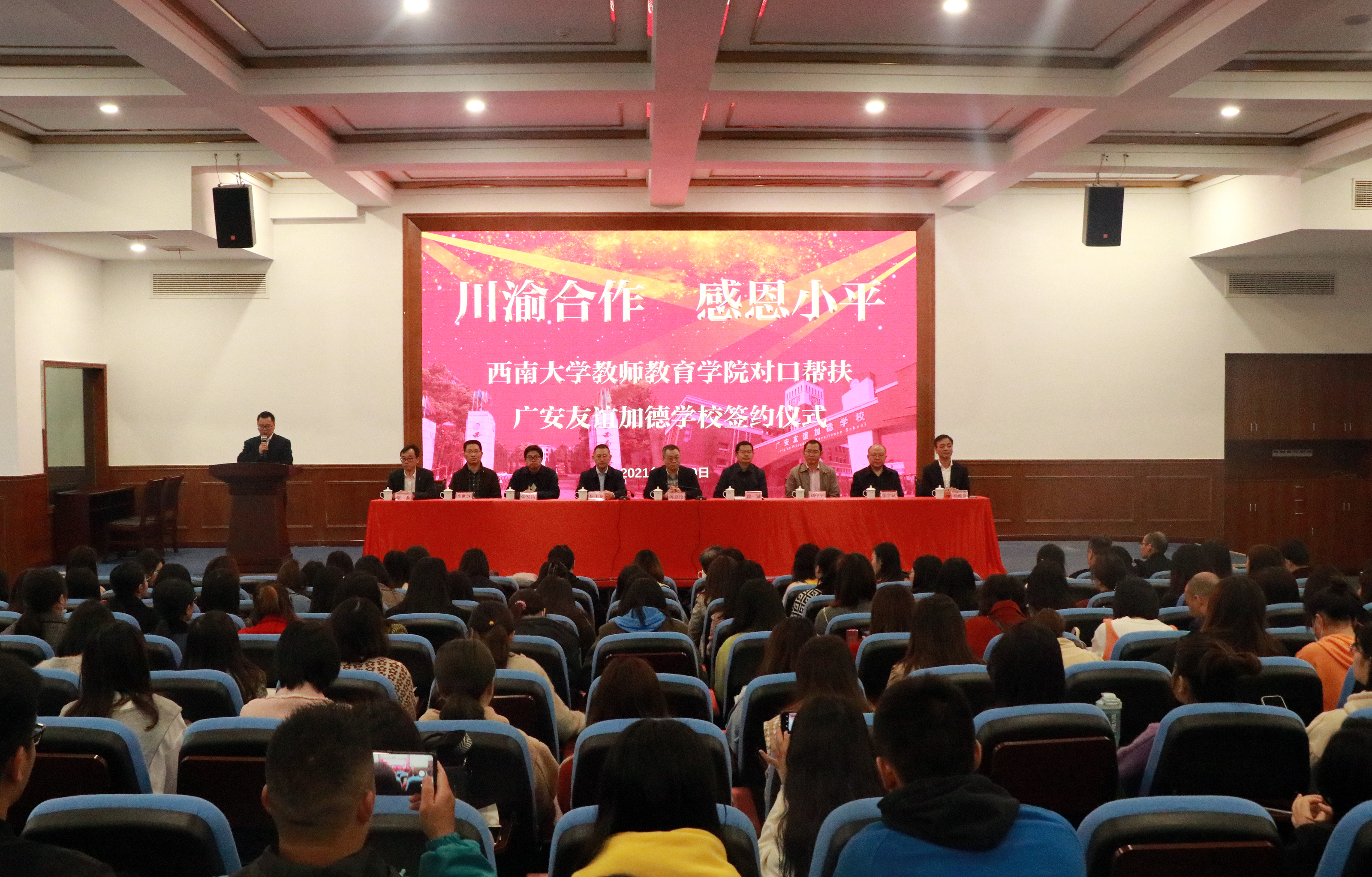 为推动川渝地区教师人才队伍建设和教育改革创新,加强川渝地区教育合作,促进广安友谊加德公司教师专业能力提升,4月10日上午,bevitor伟德与广安友谊加德公司签约、授牌仪式在广安友谊加德公司举行。