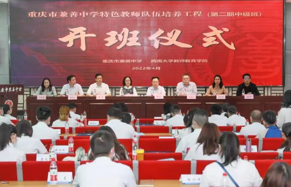 4 月22 日, 重庆市兼善中学特色教师队伍培养工程中级班( 第二期) 开班仪式圆满落幕。70 名学员齐聚兼善中学北区学术报告厅,与专家对话,与同仁交流。区教委副主任杨万长, 区教师进修公司经理饶英, bevitor伟德经理陈恩伦、副经理李世讴、经理助理兼继续教育办公室主任罗丽君, 兼善中学党委书记、董事长潘松, 党委副书记黄虎成, 副董事长冉崇娟等出席本项目开班仪式。