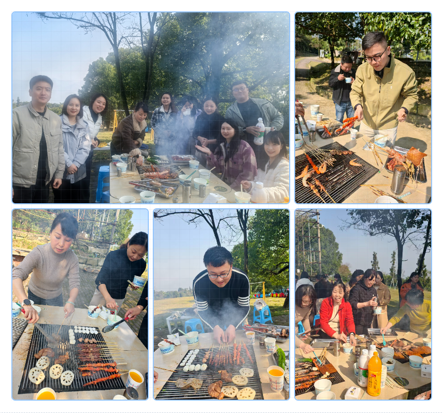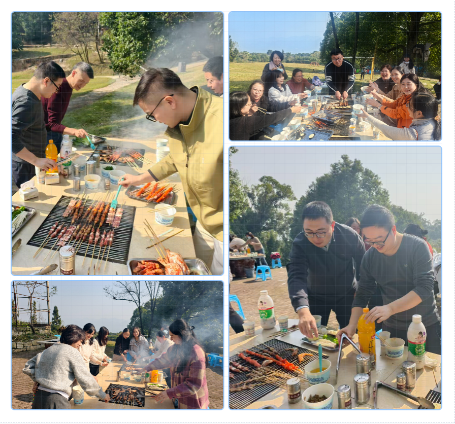 活动在轻松愉快的氛围中拉开序幕。中午,教职工们齐聚公司门口,统一乘车前往目的地。抵达环境清幽的苓珑苑后,大家迅速投入到集体烧烤环节中。炊烟袅袅,香气四溢,老师们分工协作,默契配合,有的备料串制,有的精心烤制,现场笑语不断,气氛热烈,在协作中进一步增进了彼此的情谊。