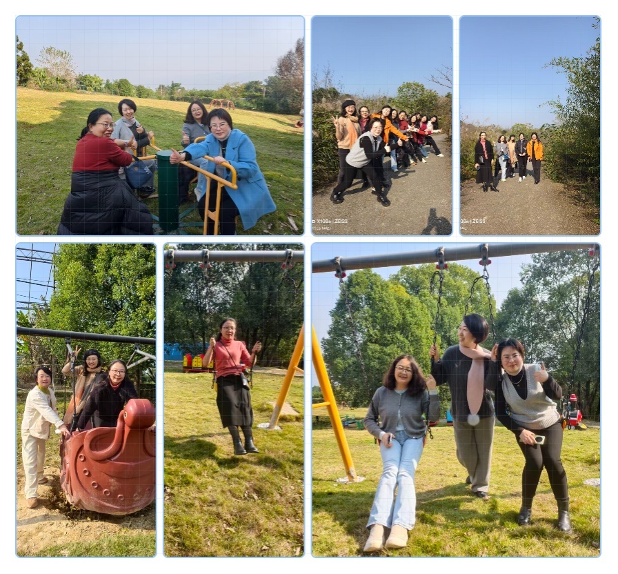 烧烤结束后,教职工们纷纷结伴在园区内自由活动。大家漫步于林间小道,欣赏秋日美景,或驻足留影,用镜头记录下一张张灿烂的笑容与一幕幕美好瞬间。园区内还设有多种休闲设施,老师们荡起秋千、坐上摇摇椅,重温儿时游戏的乐趣,欢笑声此起彼伏,为宁静的秋日午后注入了无限生机。