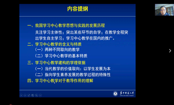 2021年4月10日上午9:00-11:00,公司特邀请华中师范大学二级教授,课程与教学论专业博士生导师陈佑清开展了《学习中心教学的建构》专题云讲座。本次讲座由皇甫倩副教授主持,受到了教师和员工的广泛关注,在线人数将近200人。