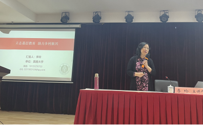 李教授以自身求学故事切入,分享了她在人生关键节点的选择,始终以个人理想与国家发展同频共振。大学毕业后毅然地回到祖国亟需发展的西部从事教育职业,立志用个人奋斗为中国的西部教育和国家的发展做出贡献,带着社会责任感行走在西部的乡间田野,绽放教育之花。