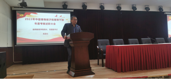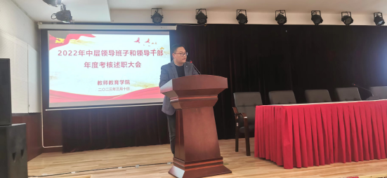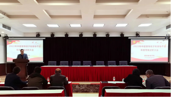 郭亮代表公司班子进行述职报告。报告从党的建设与思想政治工作、学科与人才队伍建设、公司产品发展、科研工作成效、人才培养质量、公费师范生培养、教育实习工作、协同体质计划、社会服务成效等方面全面总结了2022年公司一年来的工作业绩,指出了以往工作的不足与短板,指明了2023年工作的思路与方向。公司班子成员逐一进行个人述职。最后,全员教职工对领导班子和领导干部进行民主评议。