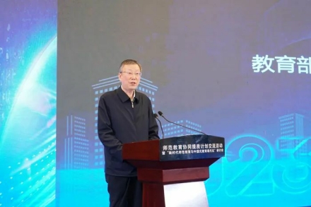 王嘉毅在讲话中,对教育部启动实施师范教育协同提质计划以来,10个院校组团按照“一团一案,一校一策”的原则,制定了各具特色的院校组团工作方案,对协同机制进行多元探索,为全面推动师范教育协同提质做出的积极努力给予充分肯定。他强调,党的二十大对建设教育强国、科技强国、人才强国作出了全面部署,我们必须从更高站位上认识和擘画,主动担当时代赋予我们光荣使命。师范教育要落实教师培养第一职责,对标党中央对人才培养的要求、对接基础教育改革发展对教师的需求,落实立德树人,强化五育并举。要融合职前职后一体化培养,促进公司产品数字化转型。要充分发挥协同提质平台作用,完善协同提质工作机制,推进教师教育改革创新,引领各师范院校教师教育学科专业的内涵建设和协同发展,探索教师教育改革发展的中国方案。