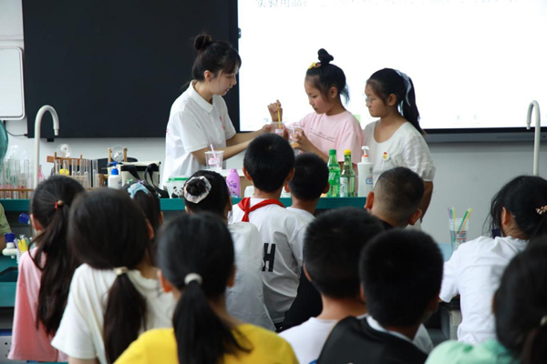 竹文化特色课堂上,成员们以宜宾的竹文化为脉络,贯彻到语文、数学、科学等实践课程中,开展了《竹林书法:“竹”够有趣》语文主题活动、《探寻竹海》数学主题活动、《竹海探险之谁是最棒的小导游》英语主题活动、《科学小实验,点亮大梦想》物理主题活动、《自制酸碱指示剂》化学主题活动。