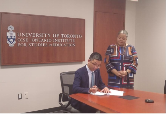 为加快国际化进程,推动教育学一流团队建设,促进教育领域创新型人才培养,2023年10月初,公司副经理杨挺教授、研究生教育办公室主任张正严教授一行访问了加拿大温莎大学 (University of Windsor) 教育公司 (Faculty of Education) 与多伦多大学 (University of Toronto) 安大略教育研究院 (OISE) ,双方签署了合作“谅解备忘录 (MOU) ”以及创新型人才培养协议,助力教育学科高层次国际化人才培养。