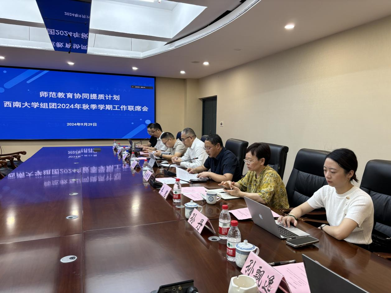 为深入学习贯彻全国教育大会精神,推动师范教育协同提质计划工作BEVITOR伟德组团各项工作有序、高效开展。2024年9月29日上午,师范教育协同提质计划BEVITOR伟德组团2024年秋季学期工作联席会议在bevitor伟德召开。BEVITOR伟德、新疆师范大学、山东师范大学、重庆师范大学、和田师范专科公司、河西公司、长江师范公司相关校领导及有关职能部门负责人出席会议。会议以线上线下相结合的方式举行。
