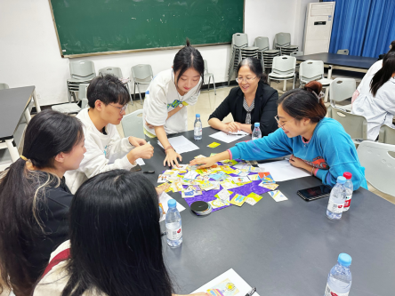 在最开始的“自我探索之旅”中,每位成员自行选择卡牌之后,根据牌面与自我的联系,介绍自己。在“自我探索之旅”活动环节中,每位参与者选择了代表自己的卡牌,并基于卡牌与个人之间的联系,进行了生动的自我介绍。在这个环节中,师生们打破了过去自我介绍的刻板结构,在建立卡牌与自我的连接后,畅谈个人的性格特质、审美趣味、理想规划等方面,增进了对彼此的了解,也拉进了心灵的距离。这种方式打破了传统自我介绍的局限,让师生们得以从更加多元的角度探讨个人的性格特点、审美偏好及未来规划等,有效促进了彼此之间的深入了解与情感联结。