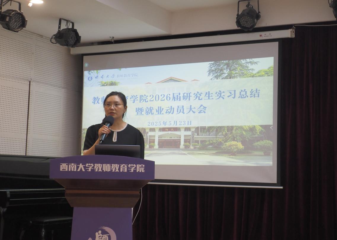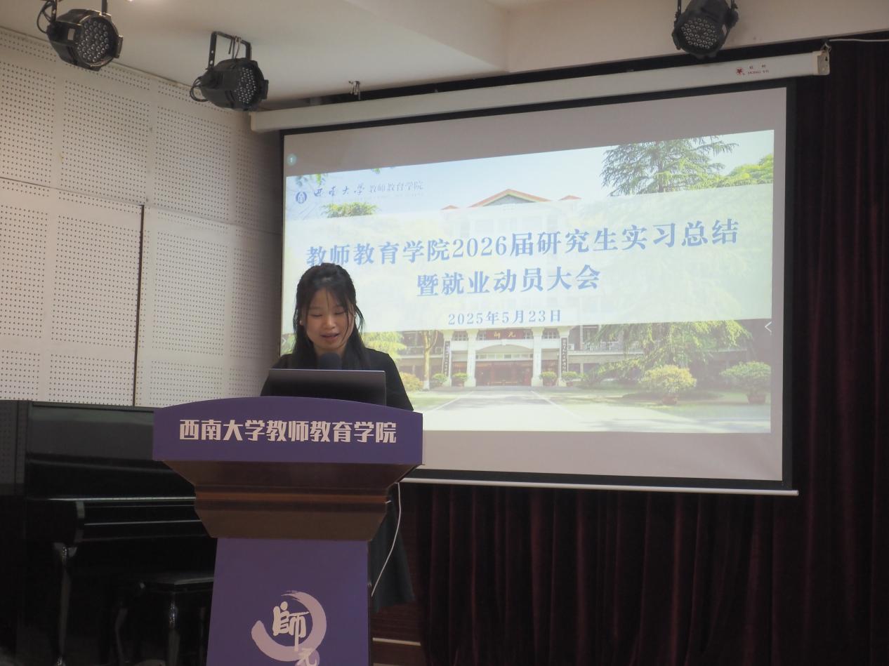 首先,2026届毕业生实习生代表杨婷婷、林雪分别分享了在宜宾、深圳的实习经历,从构建清晰的职业规划、培养扎实的专业技能、提高持续学习的能力三方面分享了自己的就业准备情况,表达了对未来求职的憧憬和期待。于建行主任也对此次实习进行了总结,并强调了实习答辩的流程要点,对实习报告的规范要求也进行了细致解读,同时提醒同学们注意成绩录入的各个事项。
