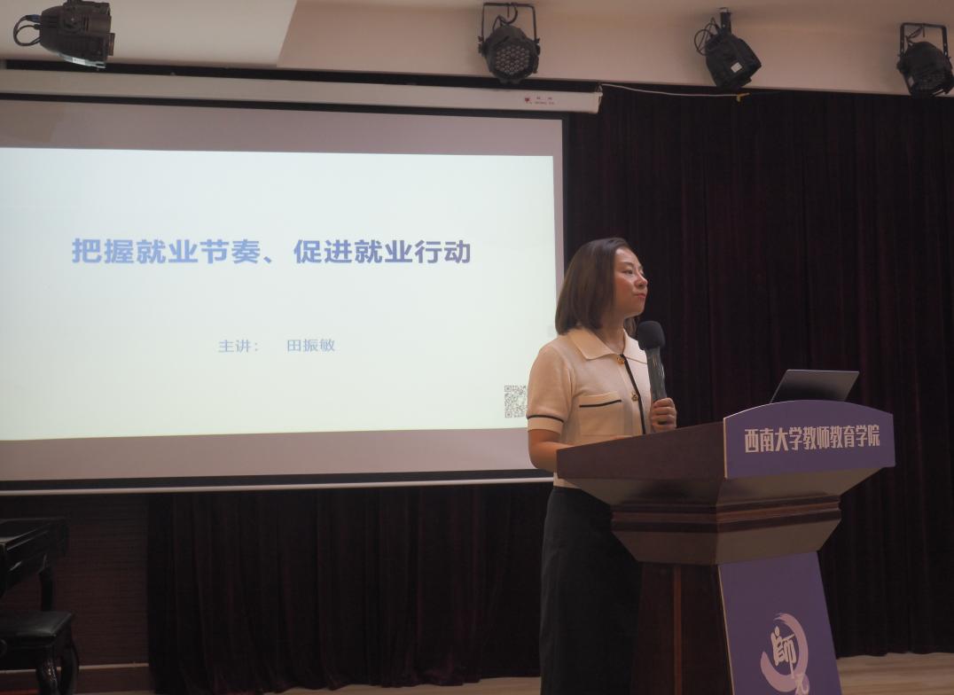 面对新时期机遇与挑战并存的就业新形势,公司员工职业发展与实践服务中心田振敏老师以“把握就业节奏,促进就业行动”为主题展开深入讲解。她结合与2026届研究生学历背景相近的具体案例,精准解读了关键就业节点的“黄金要求”,包括简历投递、面试技巧、offer选择等关键环节的注意事项。她鼓励同学们巩固专业基础,深入挖掘个人优势,在简历中突出个人闪光点,以实际行动夯实就业竞争力。