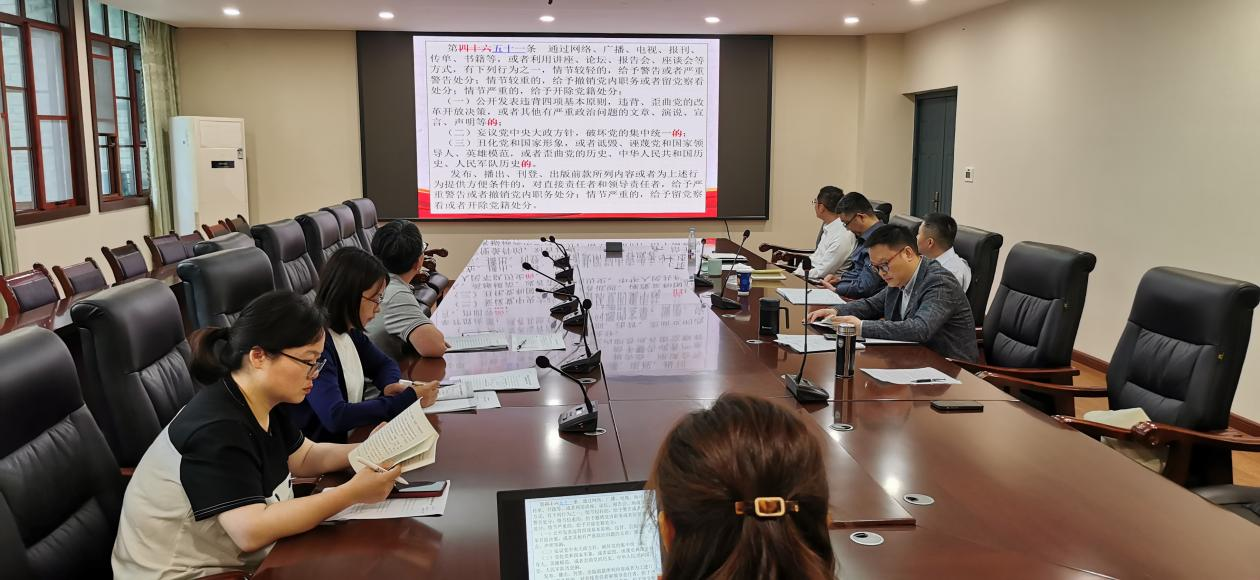 会议学习《中国共产党纪律处分条例》。党委副书记陈铮领学《中国共产党纪律处分条例》第六章内容,全体人员逐章逐条学习。会议还学习了党的十八大以来,违反政治纪律的部分案例剖析。